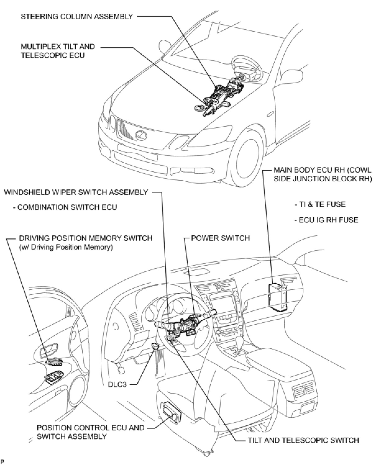 STEERING COLUMN: POWER TILT AND POWER TELESCOPIC STEERING COLUMN SYSTEM: PARTS LOCATION