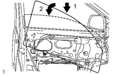 (a) Insert the door glass into the door panel along the glass run as indicated by the arrows in the illustration.