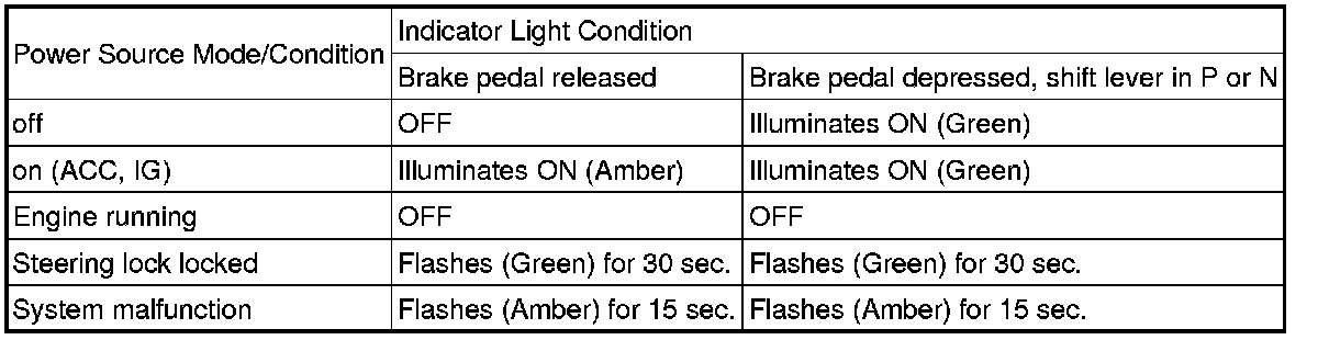 * The amber and green LEDs are for the indicator lights. The driver can check the present power source mode and whether the engine can start or not in accordance with the illumination state of the indicator light.