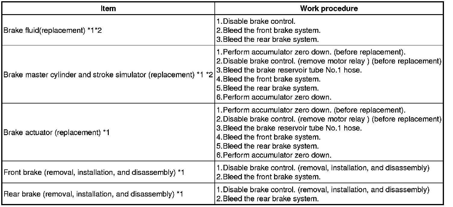 * *2 : If air enters the brake reservoir tube No.1 hose due to declined brake fluid level, be sure to bleed the brake reservoir tube No.1 hose.