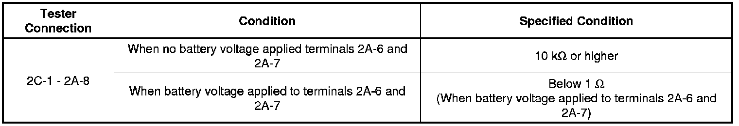 (2) Measure the resistance according to the value(s) in the table below.