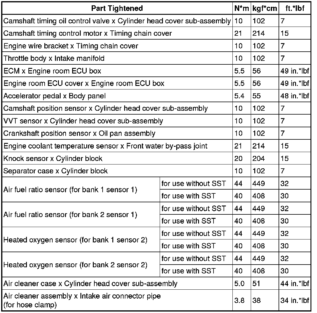 SERVICE SPECIFICATIONS: 1UR-FSE ENGINE CONTROL SYSTEM: TORQUE SPECIFICATIONS