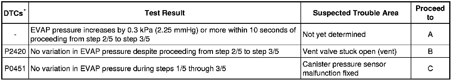 (b) Compare the EVAP pressure in step 3/5 and the second reference pressure (step 5/5).