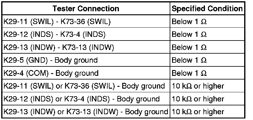 (b) Apply battery voltage between the terminals of the switch, and check the illumination condition of the switch.