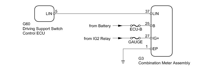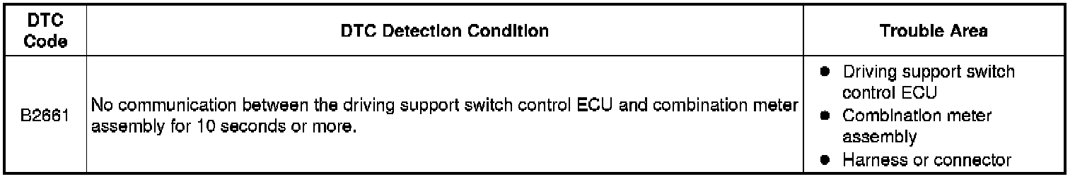 This DTC is stored when LIN communication between the driving support switch control ECU and combination meter assembly stops 10 seconds or more.