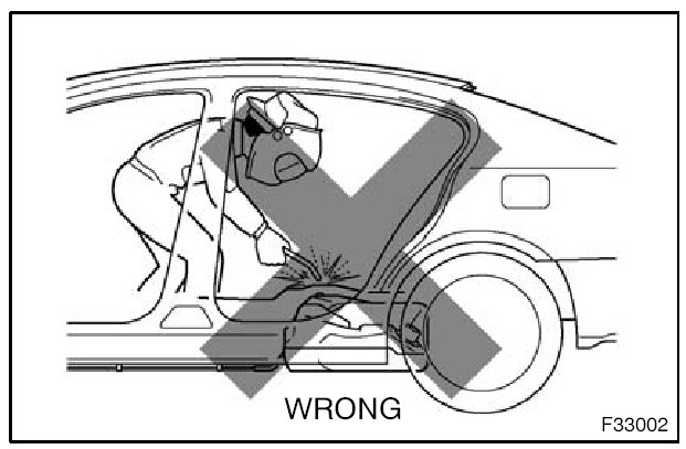 1. When welding, cover glass, seats, carpets, etc. with heat resistant fireproof covers to protect them.