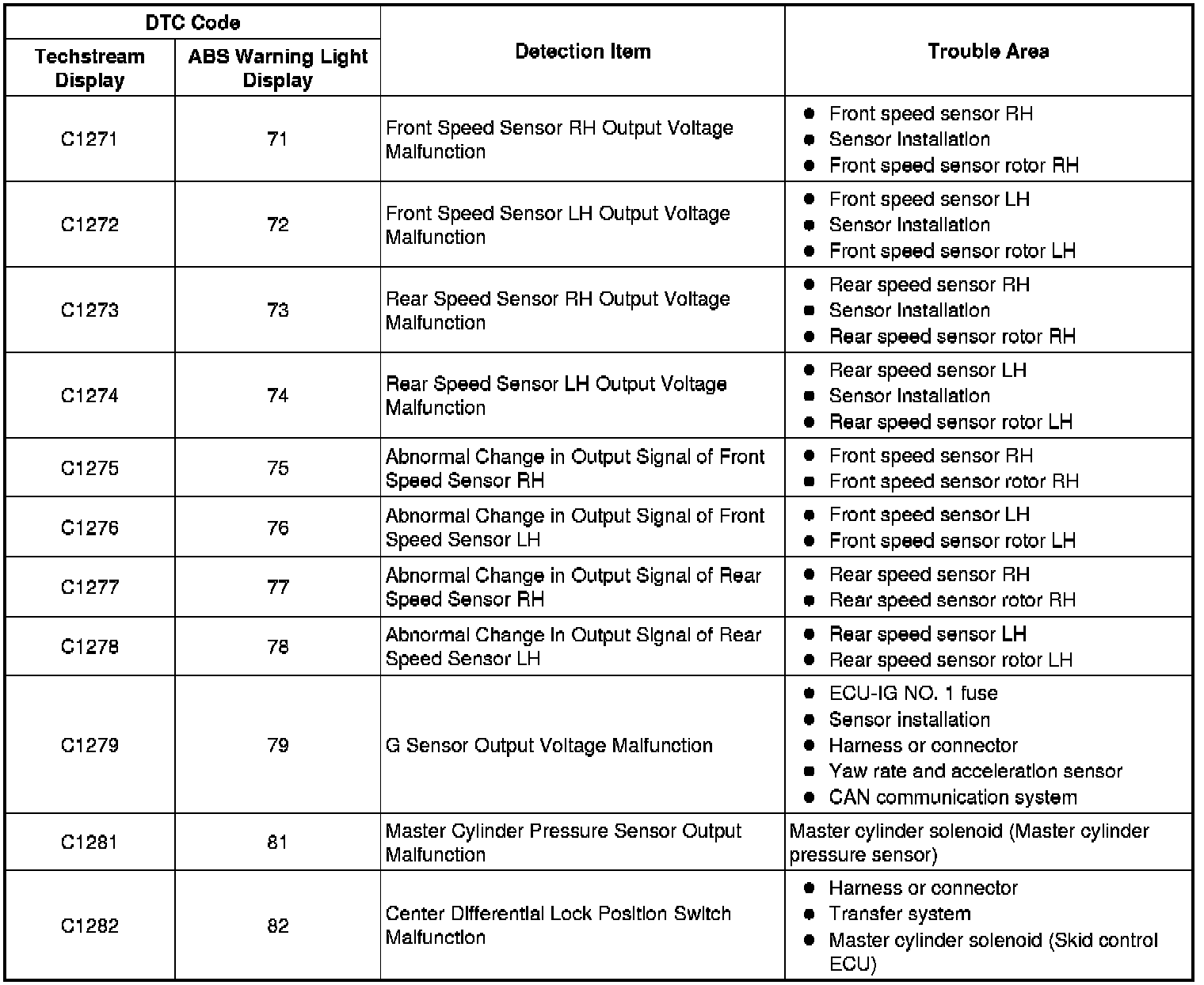 * The ABS warning light comes on immediately after a malfunction has been detected during the speed sensor check.