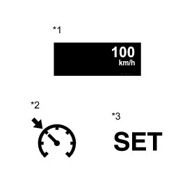 When tapping down the cruise control switch to -SET (for approximately 0.6 seconds) while the constant speed control mode is in operation, the stored vehicle speed decreases by approximately 1.6 km/h (1 mph). When the cruise control switch is pushed to -SET and the difference between the driving and stored vehicle speed is more than 5 km/h (3 mph), the vehicle speed is stored and constant speed control is maintained.