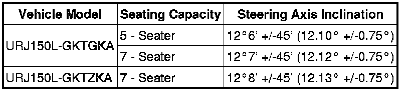 Standard Steering Axis Inclination (Unloaded Vehicle):