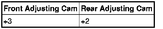 (4) As shown in the chart, read the distance from the marked point to 0, and adjust the front and/ or rear adjusting cams accordingly.