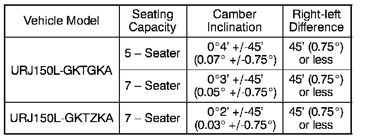 2. Standard Camber Inclination (Unloaded Vehicle):