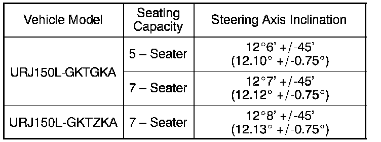 4. Standard Steering Axis Inclination (Unloaded Vehicle):