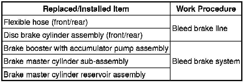 * When the brake fluid is bled, DTCs may be stored. Therefore, after air bleeding, always clear the DTCs and check that a normal system code is output.