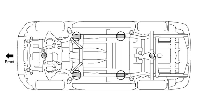 (b) When removing any heavy components like the engine or transaxle, the vehicle center of gravity will shift. To stabilize the vehicle, place a balance weight in a location that will prevent the vehicle from rolling or shifting, or place a transmission jack under the appropriate jack position at the opposite end of the vehicle.