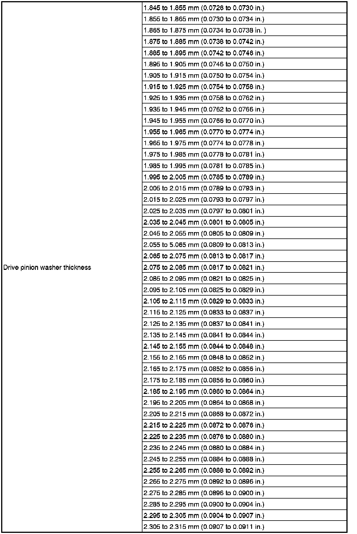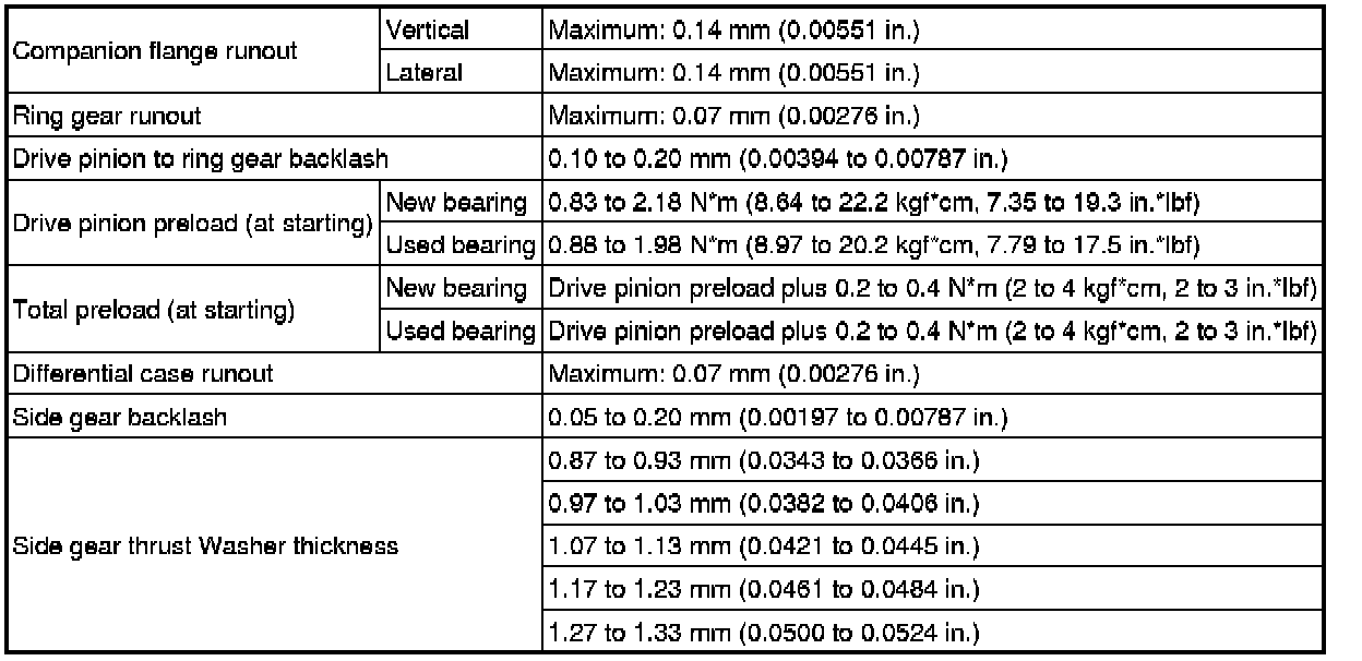 SPECIFICATIONS: AXLE AND DIFFERENTIAL: SERVICE DATA