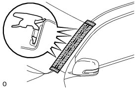 (2) Using a moulding remover, detach the 6 clips and remove the moulding.