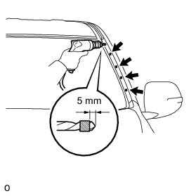 * Pressing the drill too firmly will cause the No. 3 windshield outside moulding clip to turn and result in the No. 3 windshield outside moulding clip not being drilled through.
