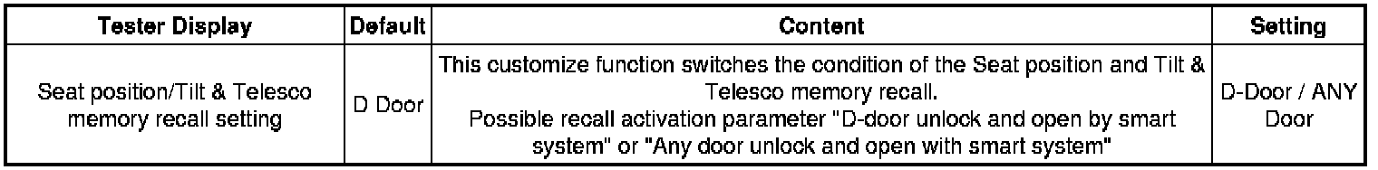 SEAT: FRONT POWER SEAT CONTROL SYSTEM (w/ Memory): CUSTOMIZE PARAMETERS