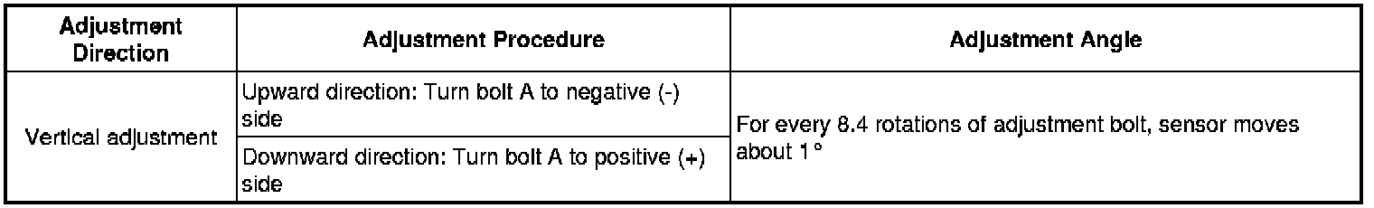 (1) If the axis is not as specified, use a screwdriver to adjust bolt B until the divergence of the radar beam axis is 0°.