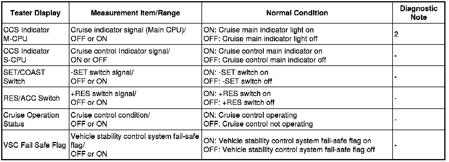 * 3 is OK, but cruise main indicator light does not illuminate -> Cruise main indicator light, wire harness, or hybrid vehicle control ECU failure