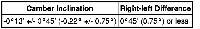 (j) The body and suspension may be damaged if the camber is not correctly adjusted according to the above table.