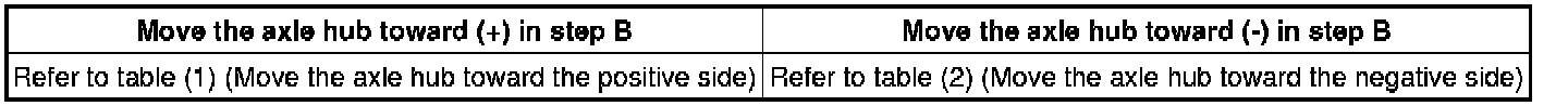 (e) Fully push or pull the front axle hub in the direction of the required adjustment. (Step B)