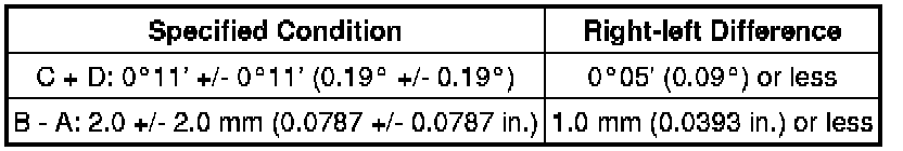 * If the angles are not as specified, check and adjust the right and left rack end lengths.