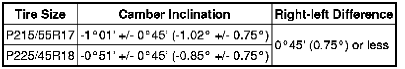 Camber (Unloaded Vehicle):