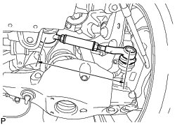 Holding the adjusting tube and using the SST, turn the lock nut at the ball joint side in both clockwise and counterclockwise directions with the specified torque to check that the matchmarks will not be misaligned.