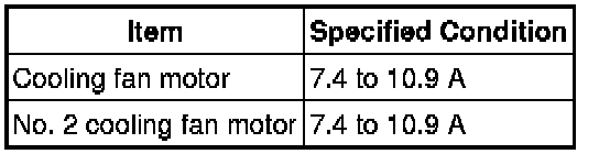 (b) Clamp the 400 A probe of an ammeter over the M+ wire of each cooling fan motor.