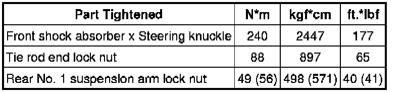 SPECIFICATIONS: ALIGNMENT / HANDLING DIAGNOSIS: TORQUE SPECIFICATIONS