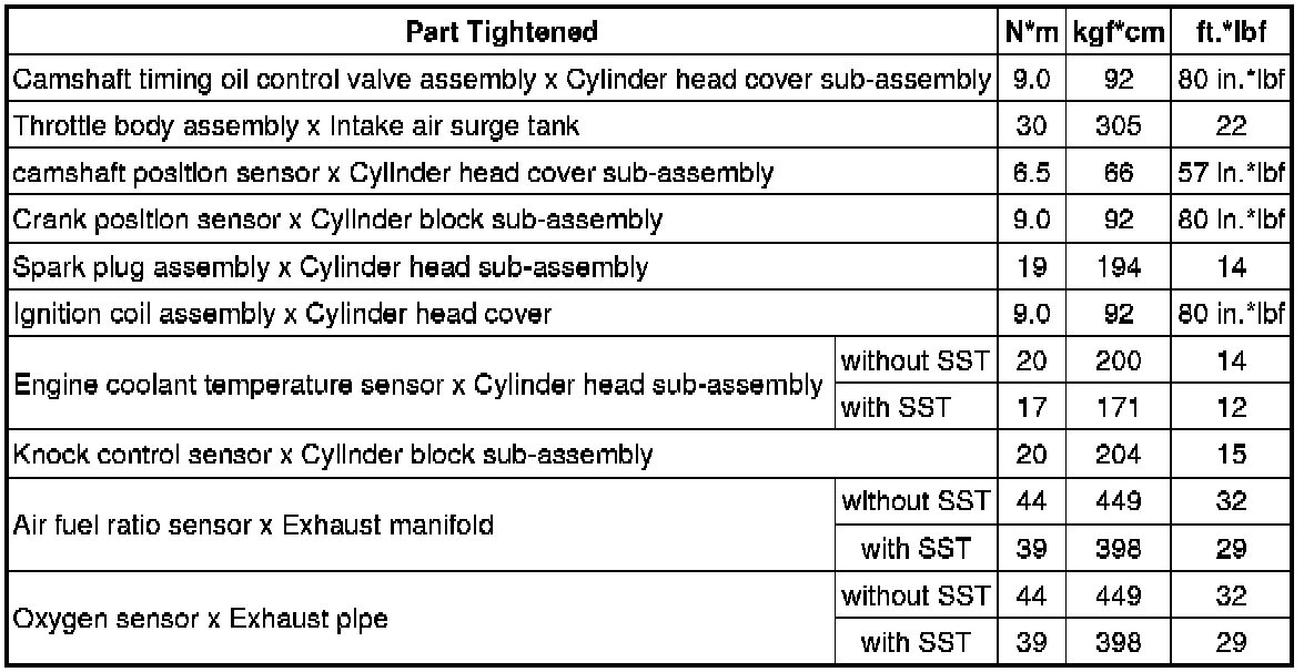 SPECIFICATIONS: 2AZ-FXE ENGINE CONTROL: TORQUE SPECIFICATIONS