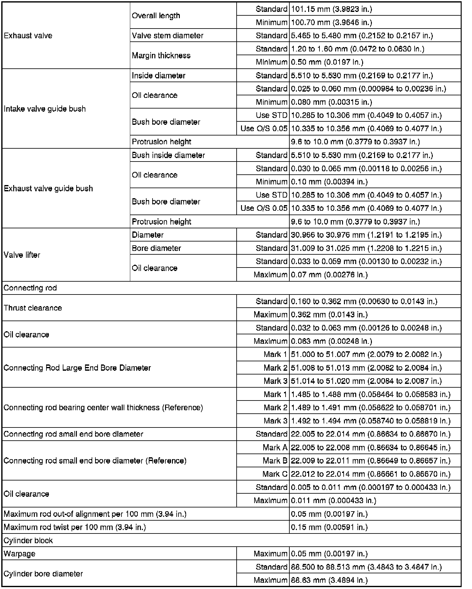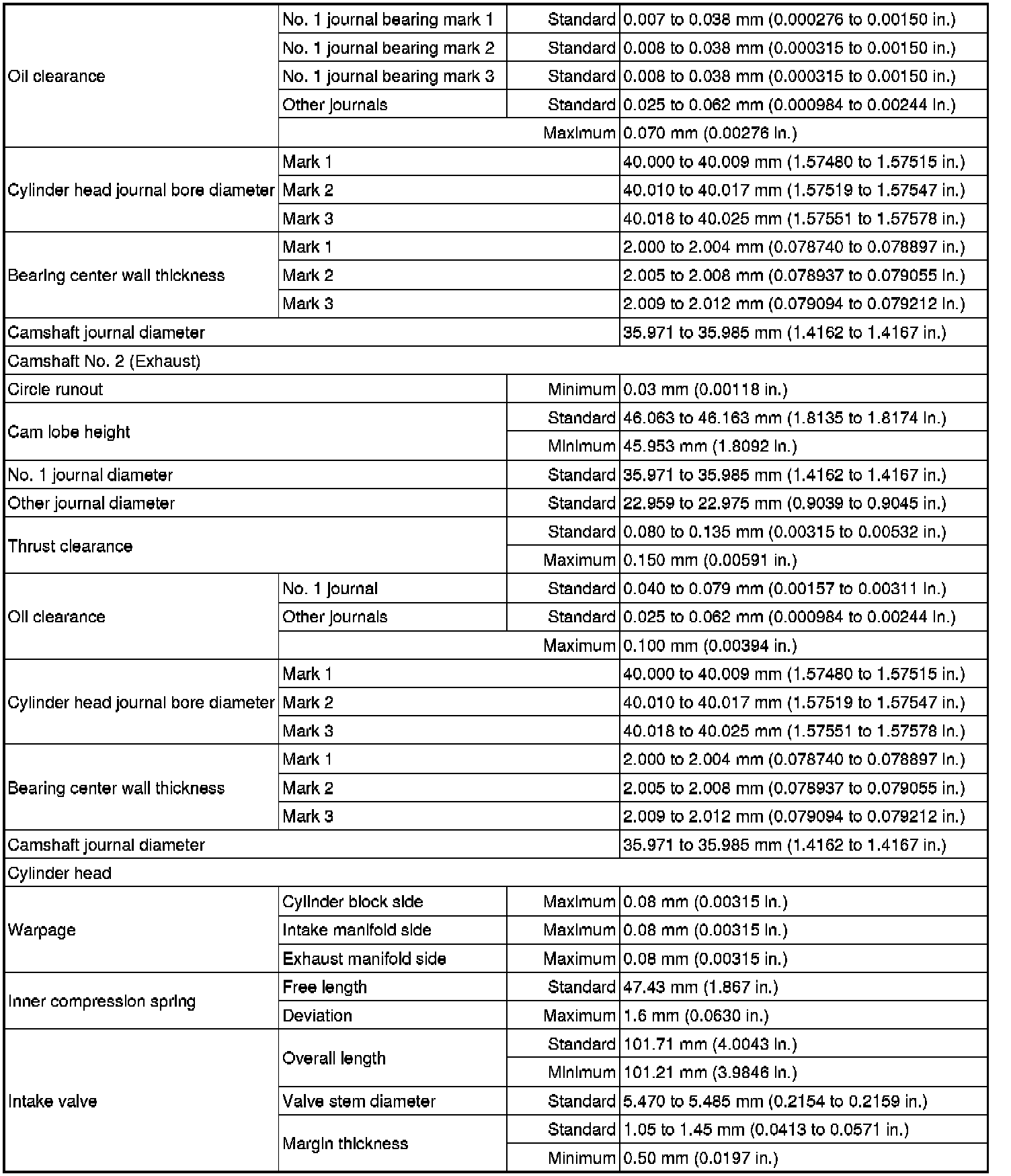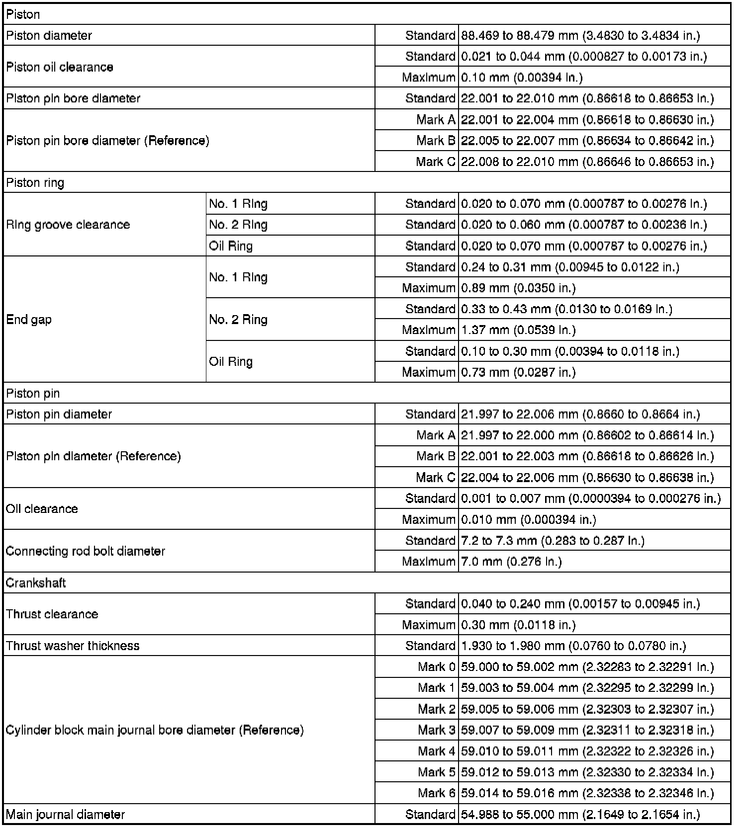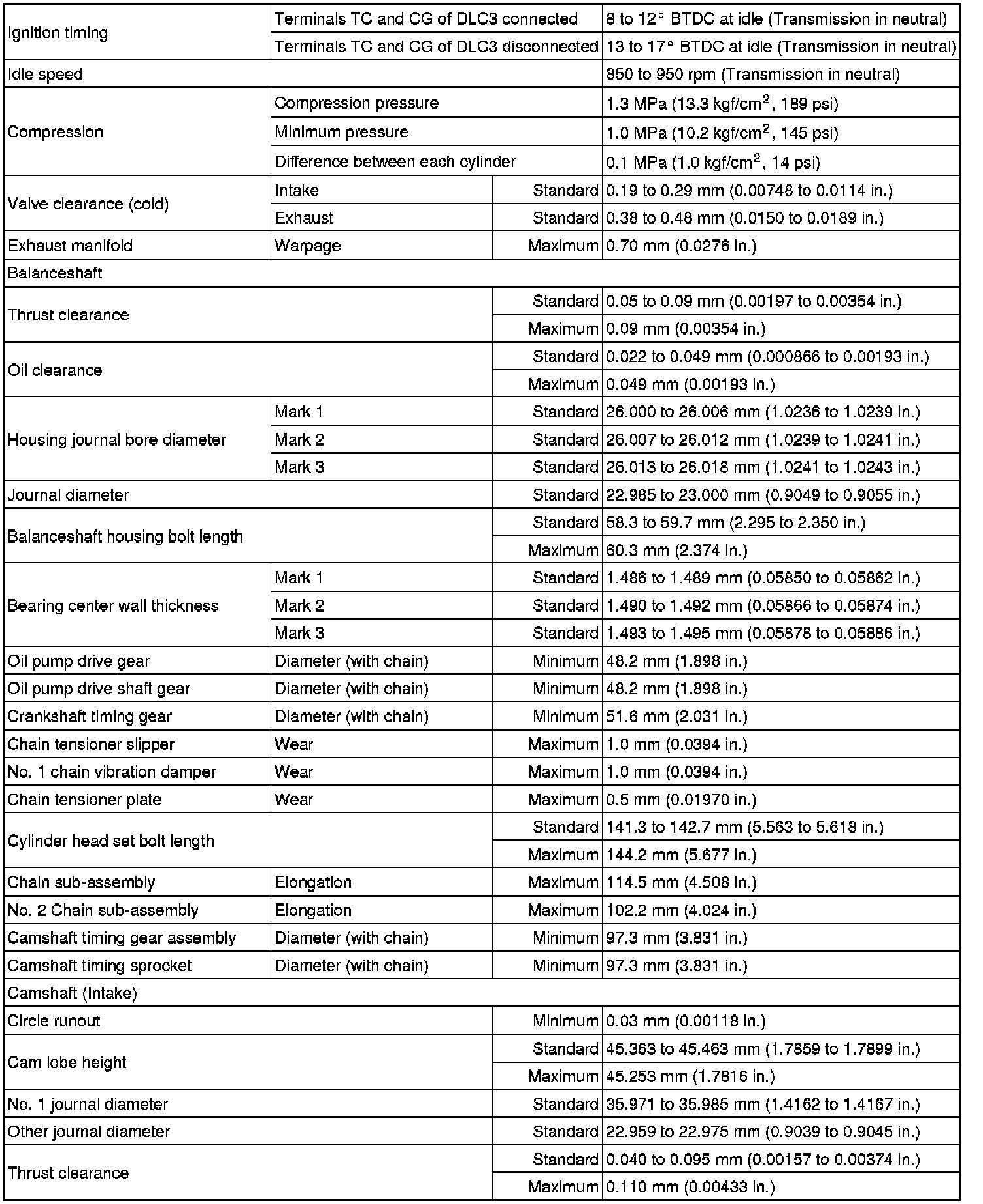 SPECIFICATIONS: 2AZ-FXE ENGINE MECHANICAL: SERVICE DATA