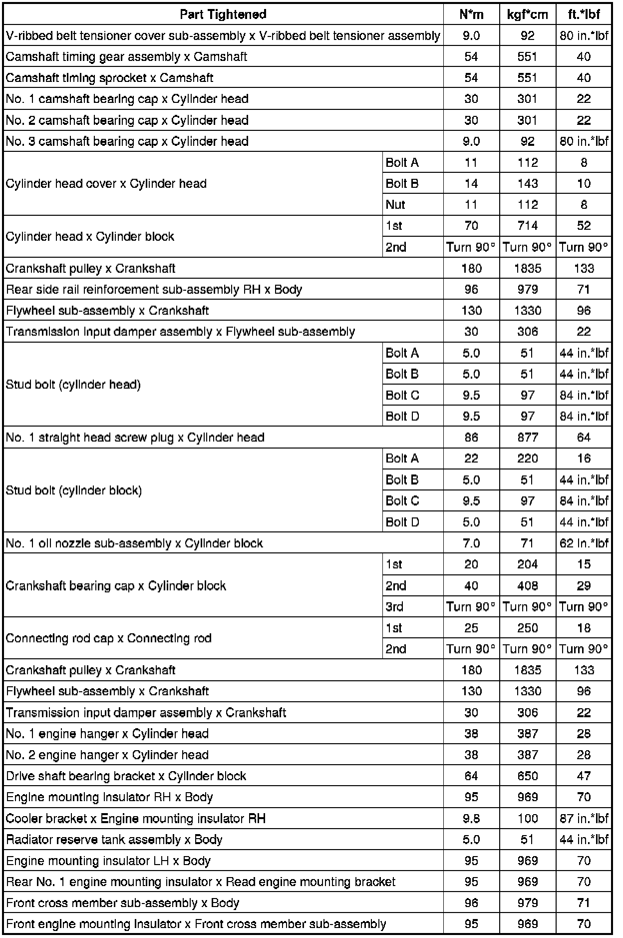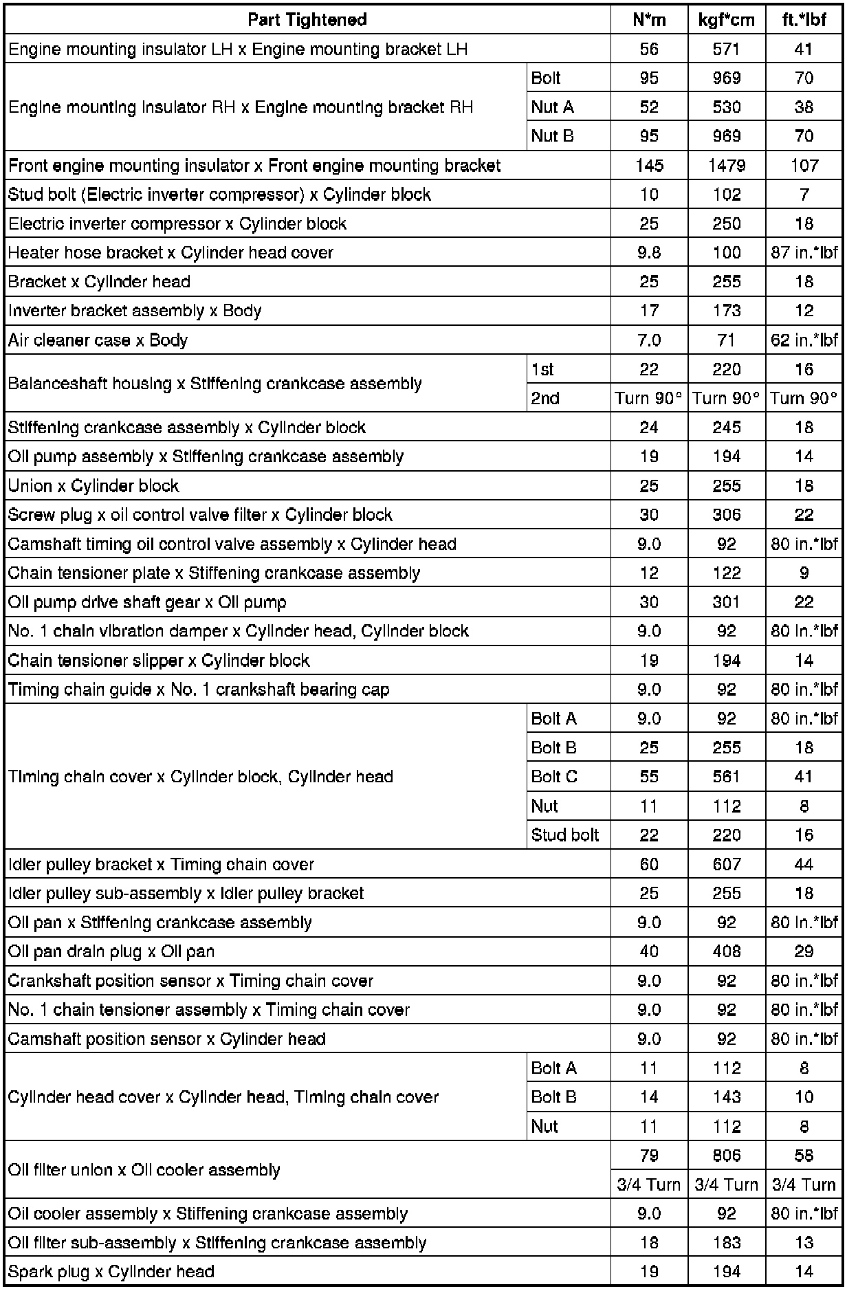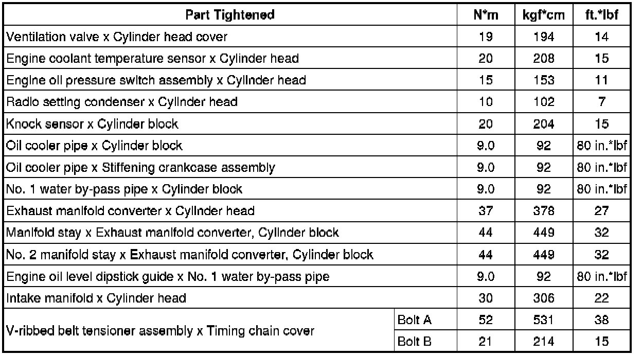 SPECIFICATIONS: 2AZ-FXE ENGINE MECHANICAL: TORQUE SPECIFICATIONS