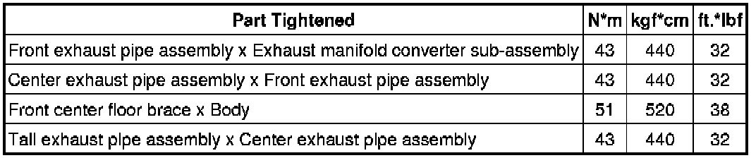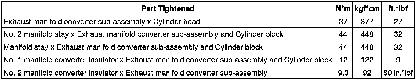 SPECIFICATIONS: 2AZ-FXE INTAKE / EXHAUST: TORQUE SPECIFICATIONS