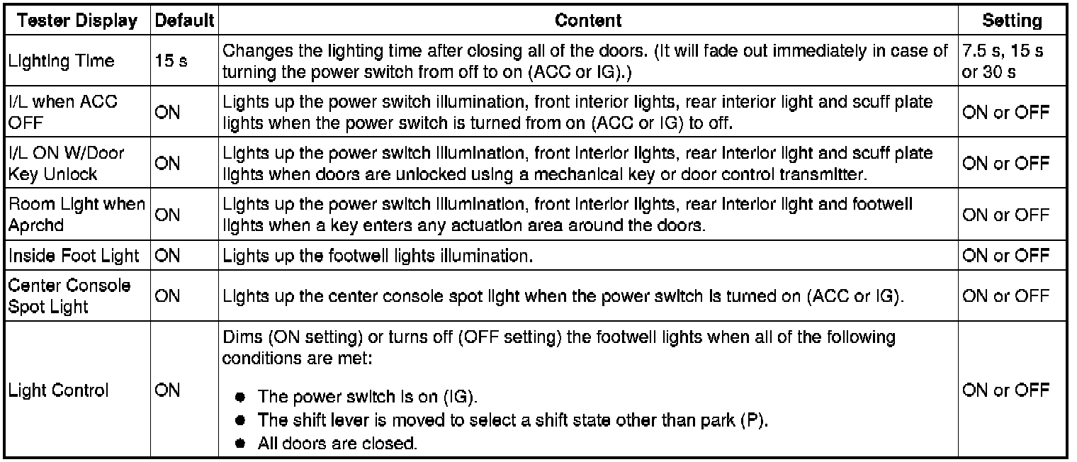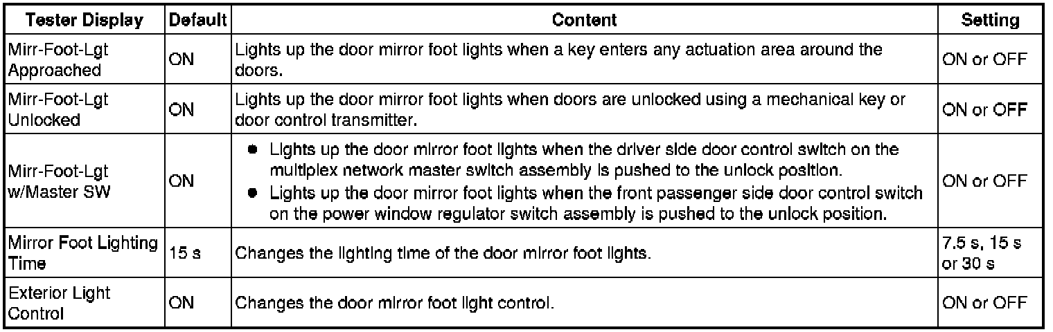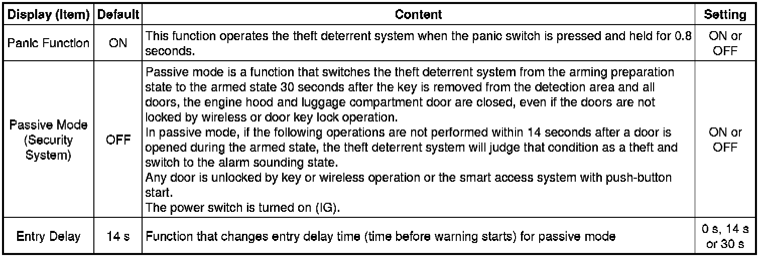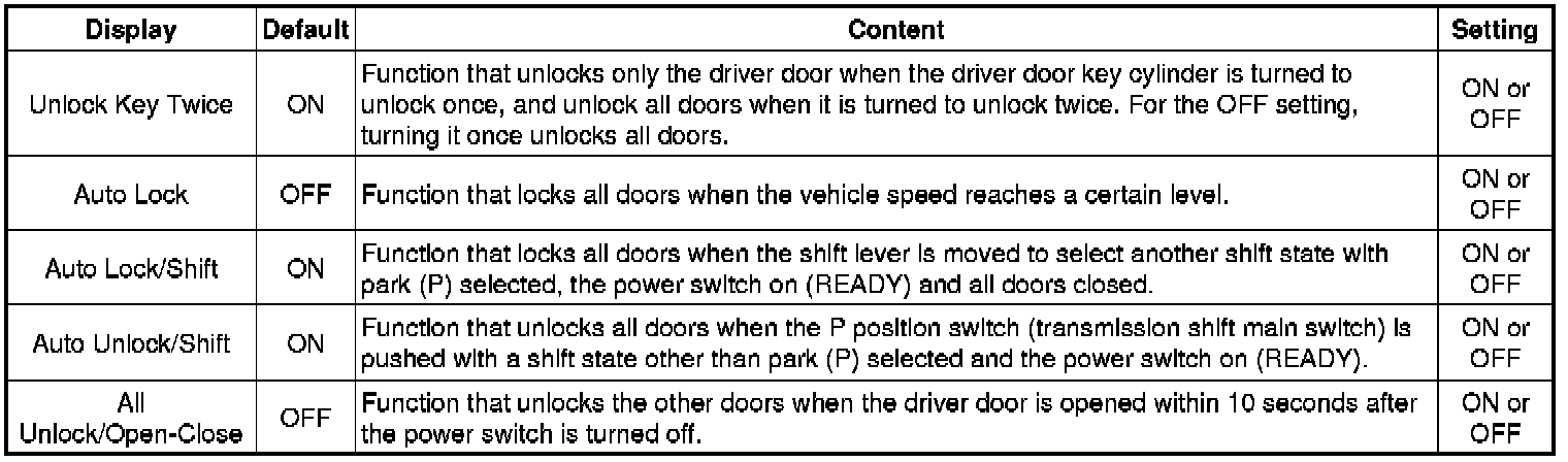 4. ENTRY UNLOCK MODE SWITCHING (SMART ACCESS SYSTEM WITH PUSH-BUTTON START (for Entry Function))