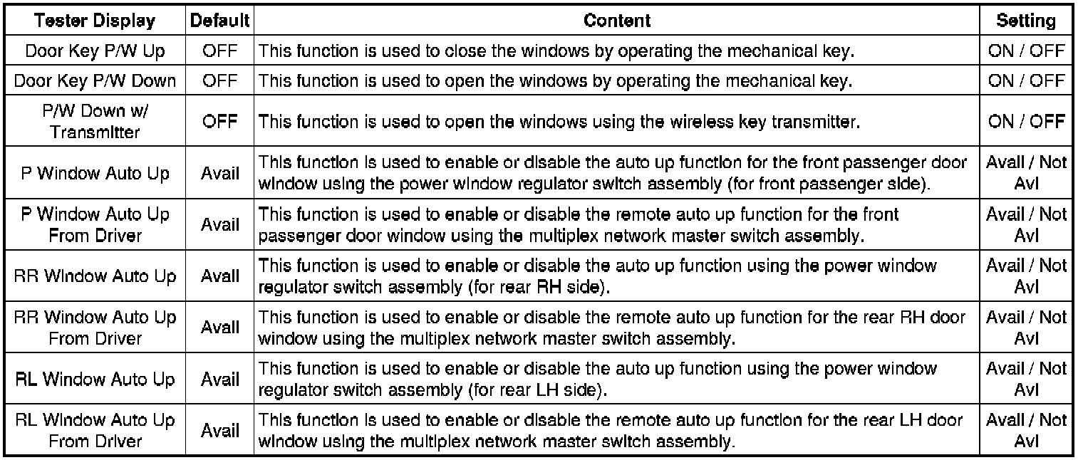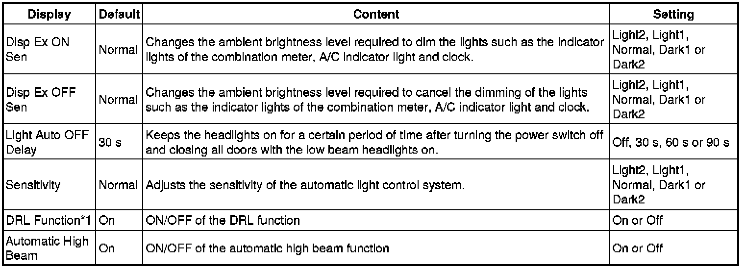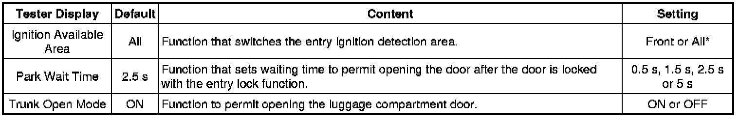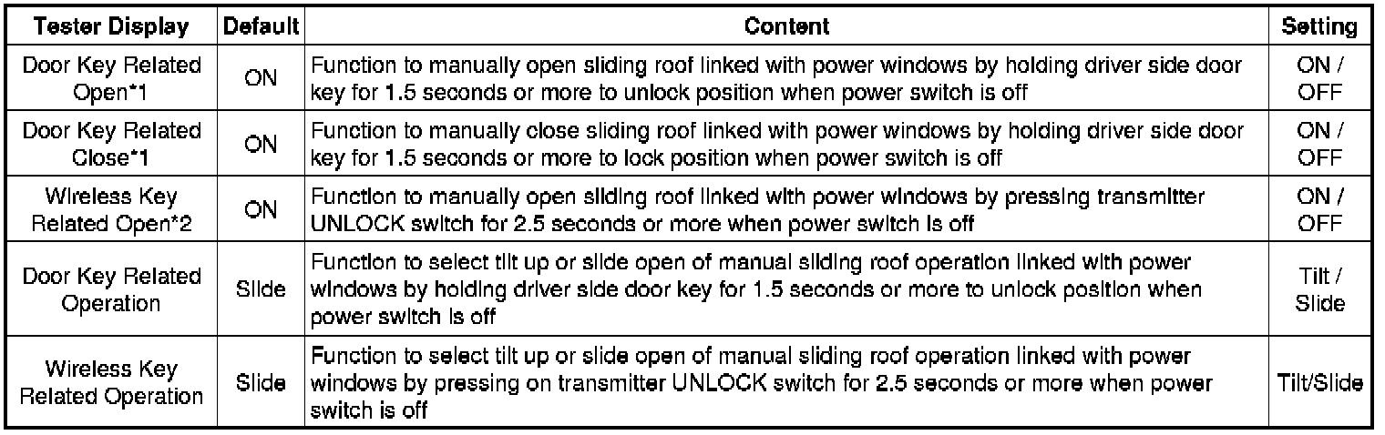 * *1: This function is linked with the power window key-linked function. If the power window key-linked function is set to OFF, the sliding roof key-linked function will not operate even when it is set to ON.