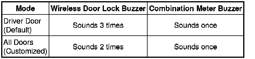 (c) The certification ECU (smart key ECU assembly) sounds the wireless door lock buzzer and combination meter buzzer to inform the user that the mode has been switched.