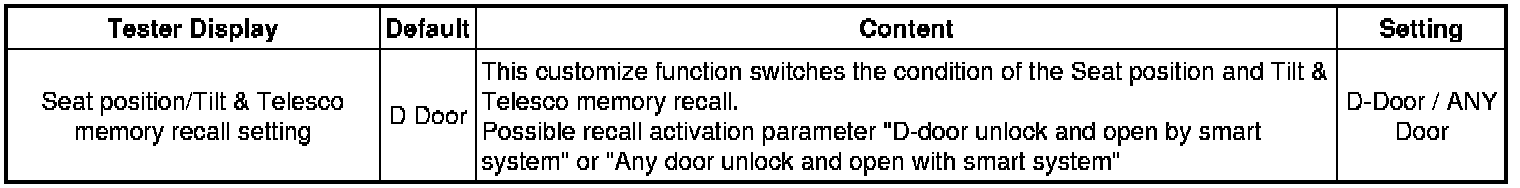 * Driver door unlock default setting: