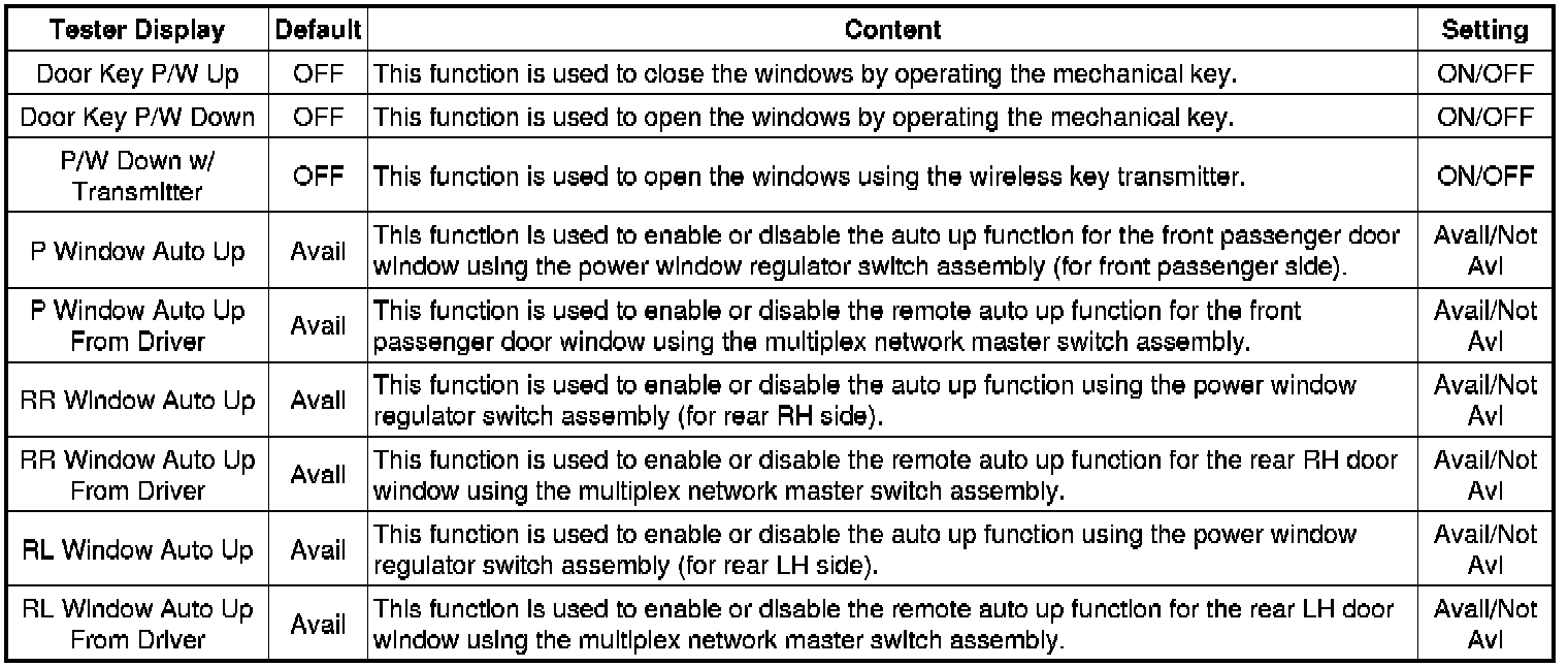 (d) Enter the following menus: Body Electrical /Customize Setting / Power Window.