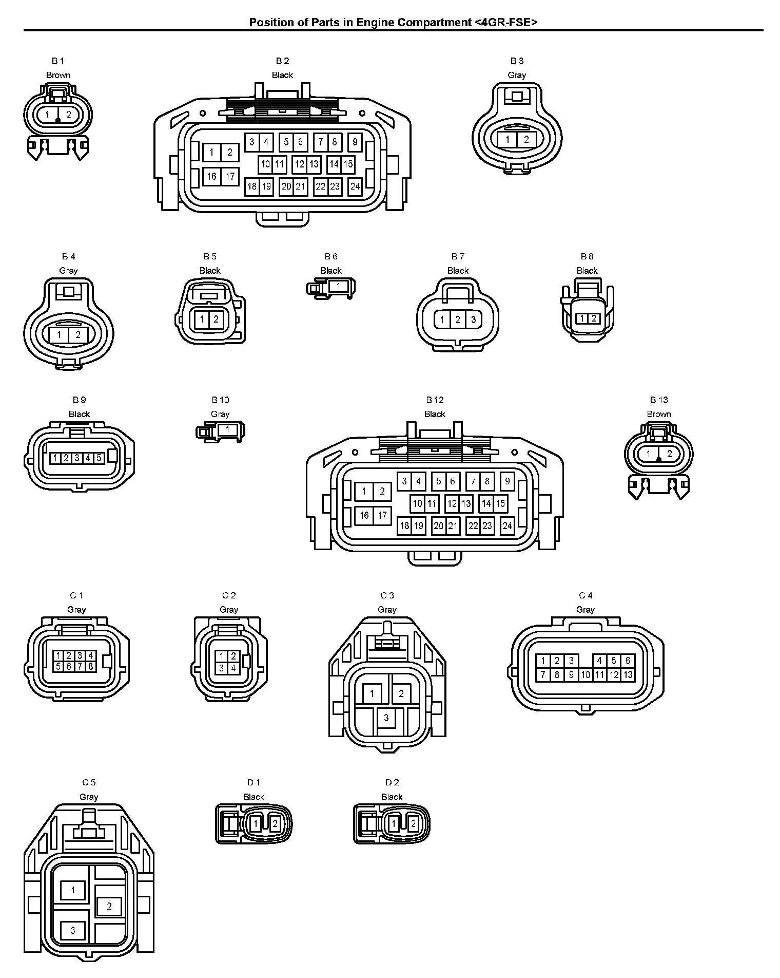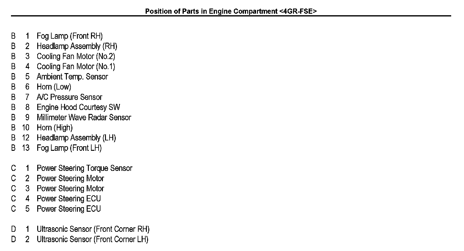 Position of Parts in Engine Compartment: