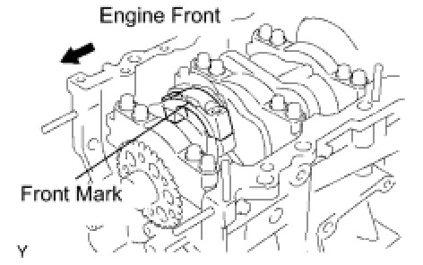 (e) Examine the front marks and numbers and install the bearing caps on the cylinder block.
