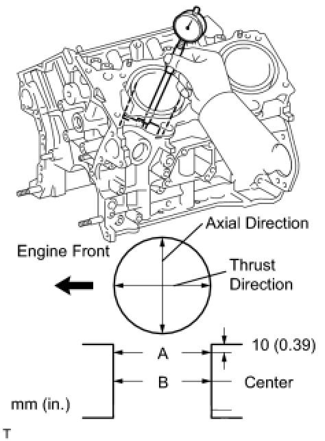 (c) Using a cylinder gauge, measure the cylinder bore diameter at positions A and B in the thrust and axial directions.
