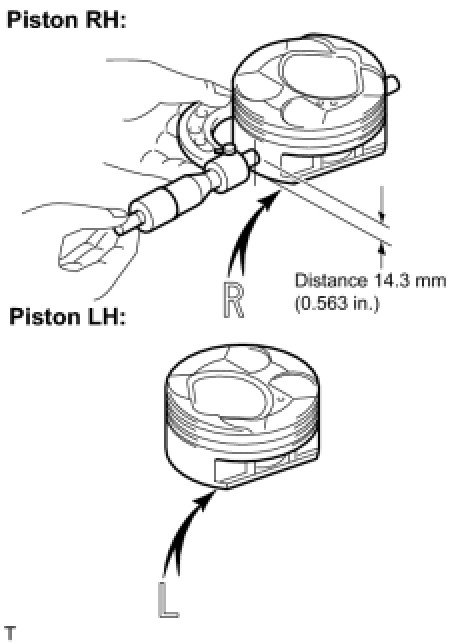 (a) Using a micrometer, measure the piston diameter at right angles to the piston center line where the distance from the piston end is as specified.