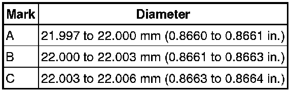 (f) Subtract the piston pin diameter measurement from the bushing inside diameter measurement.