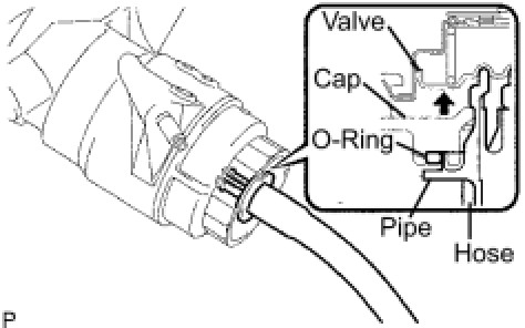 (d) Check that oil is drained from the oil filter. Then disconnect the pipe and remove the O-ring, as shown in the illustration.