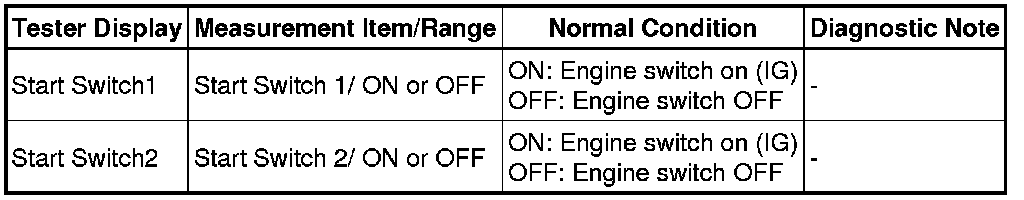 (c) Check the DATA LIST for proper functioning of the start switches 1 and 2.
