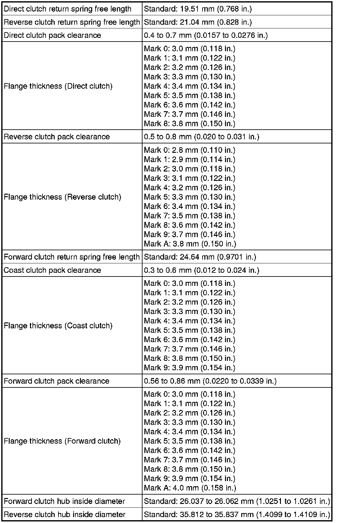 * All shift point values indicated in the above tables are actual values. Therefore, if checking a shift point with a chassis dynamometer, keep in mind that there is a range of error in the chassis dynamometer indication.