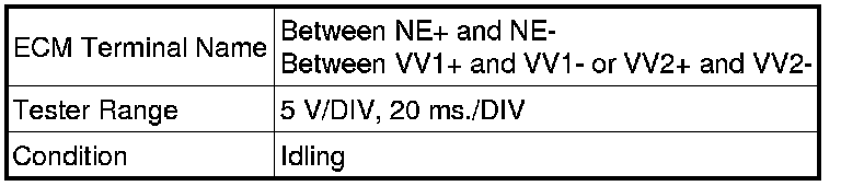 Crankshaft position sensor and VVT sensor for exhaust camshaft::