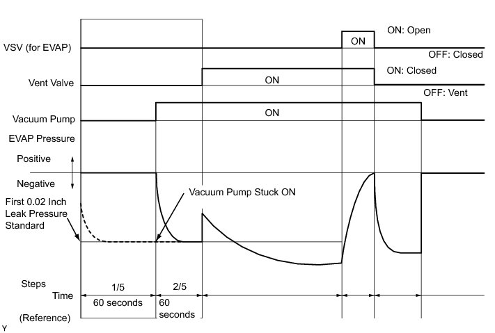 (b) Compare the EVAP pressure in step 3/5 and the second 0.02 inch leak pressure standard (step 5/5).